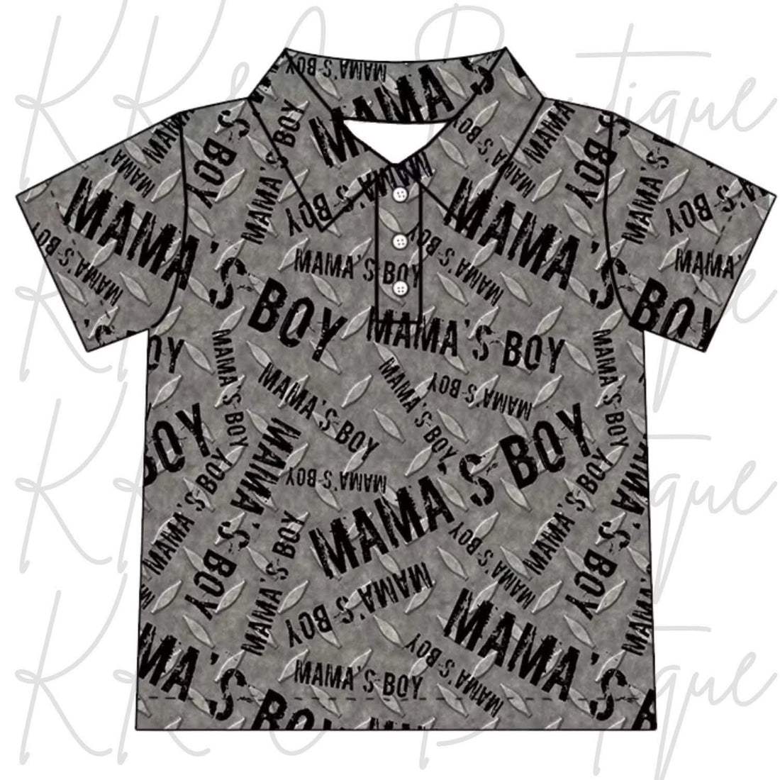 This “Mama’s Boy” button-neck tee brings a rugged look with its steel-plate pattern and bold...