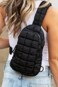 Introducing our Black Quilted Puffer Crossbody, the perfect combination of style and functionality. This sleek and versatile bag features a classic black color, a sturdy zipper for added security, and a quilted puffer design for a touch of texture. Wear it as a crossbody for hands-free convenience. Upgrade your accessories game with this must-have piece.