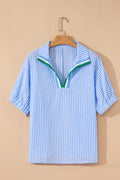 Elevate your everyday look with the Blue Stripe Dolman Blouse June. Its vertical stripes create a slimming effect, while the unique split neck adds a modern edge. Designed with comfortable dolman sleeves, this blouse offers a relaxed fit perfect for all-day wear. Stylish and flattering, it’s an effortless choice to refresh your wardrobe.