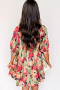 Elevate your wardrobe with this charming floral printed mini dress, designed to turn heads at any occasion. The delicate green floral pattern brings a fresh, feminine touch, while the frilled collar adds playful sophistication. The V-neckline flatters your silhouette, and half sleeves provide the perfect balance of coverage and style. Cut to a flattering mini length, this dress transitions seamlessly from casual outings to special events. Ready to ship, this versatile piece is a must-have for anyone seeking effortless elegance with a modern twist.