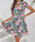 Elevate your wardrobe with this eye-catching Pink Floral and Leopard Print Dress. Featuring a playful mix of delicate florals and bold leopard spots, this piece strikes the perfect balance between feminine and fierce. The flattering V-neckline and short sleeves offer comfortable everyday wear, while charming ricrac detailing adds a vintage-inspired touch. Perfect for brunch, casual outings, or making a statement wherever you go.