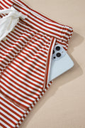 Elevate your casual wardrobe with this chic two-piece lounge set featuring a trendy red stripe design. The buttoned neckline adds a sophisticated detail, while long sleeves ensure warmth and comfort on cooler days. Perfect for a coordinated, stylish look whether relaxing at home or stepping out.
