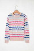 Elevate your wardrobe with the Stripe Eyelet Sweater September. Featuring a trendy drop shoulder design for a relaxed fit and an elegant eyelet pattern, this sweater combines style and comfort effortlessly. The chic striped pattern adds a fashionable touch, while the cozy fabric ensures all-day comfort. Perfect for layering or wearing on its own, this sweater is a must-have for a stylish and comfortable look