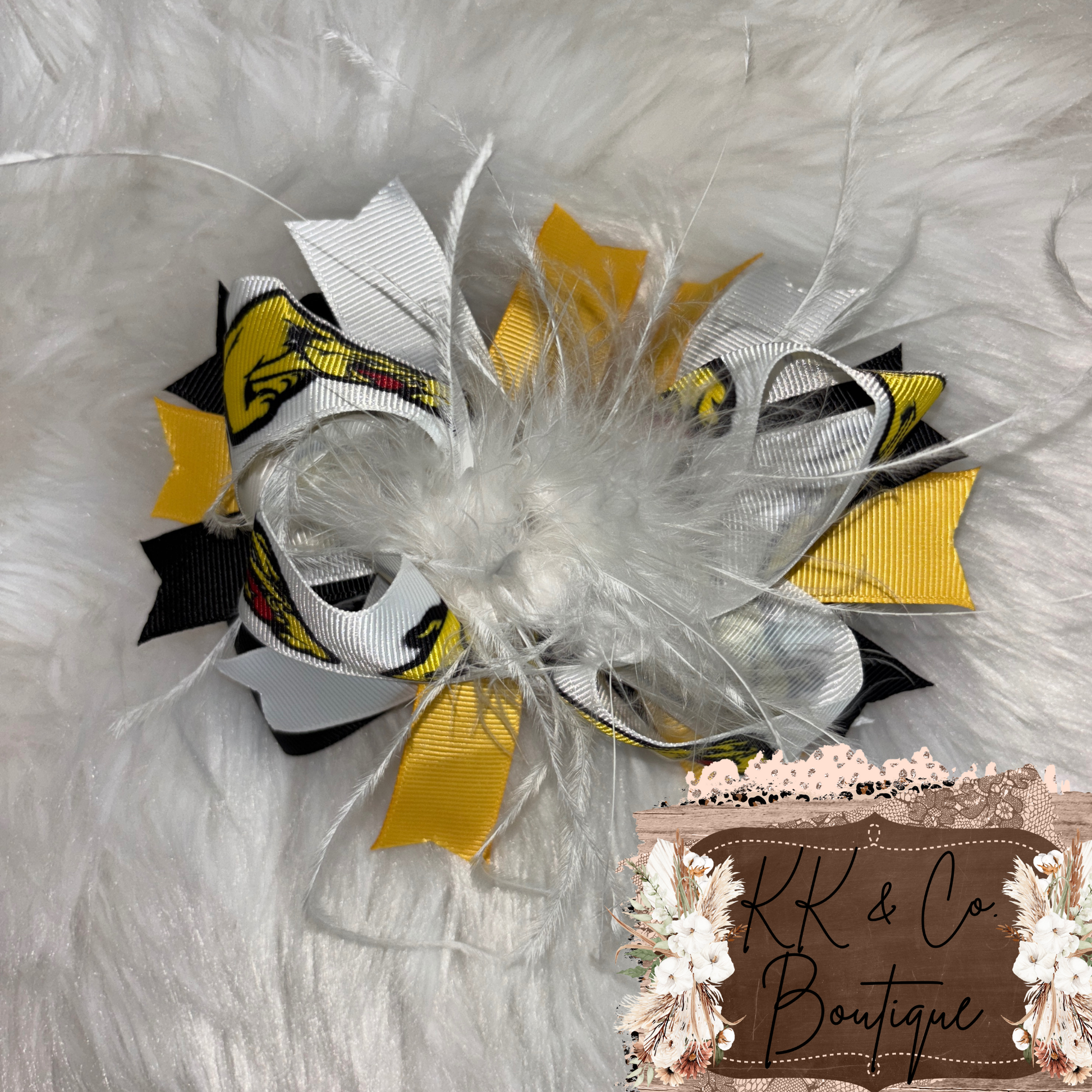 Show off your school spirit with these adorable boutique mascot bows! Each bow is layered with high-quality grosgrain ribbon, fluffy accent feathers, and your choice of Bulldog or Ridgerunner designs. Perfect for game days, spirit days, cheer outfits, or everyday wear. Finished with a sturdy alligator clip on the back for easy, secure hold.